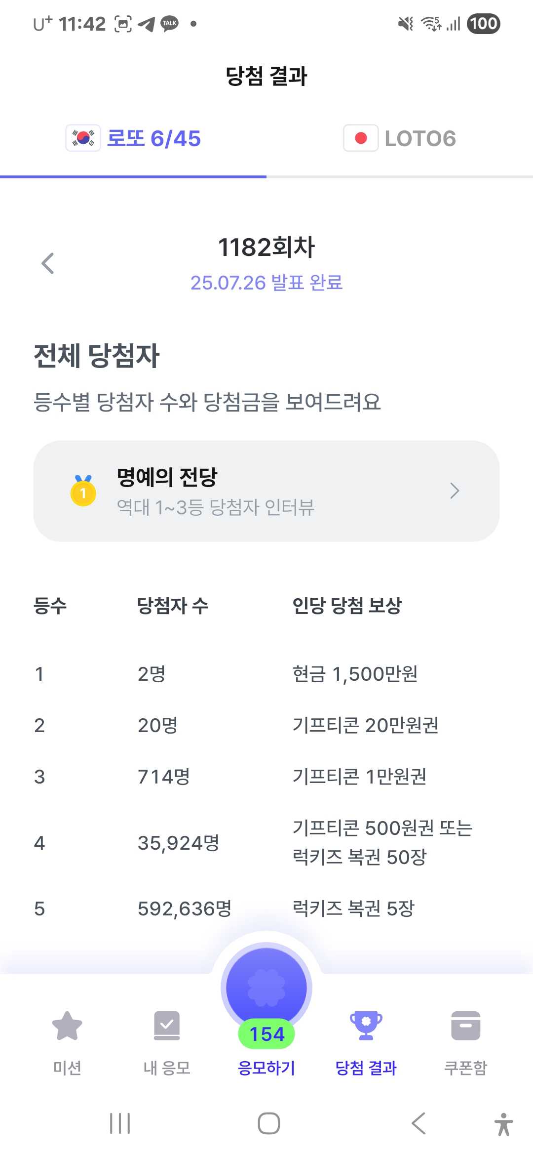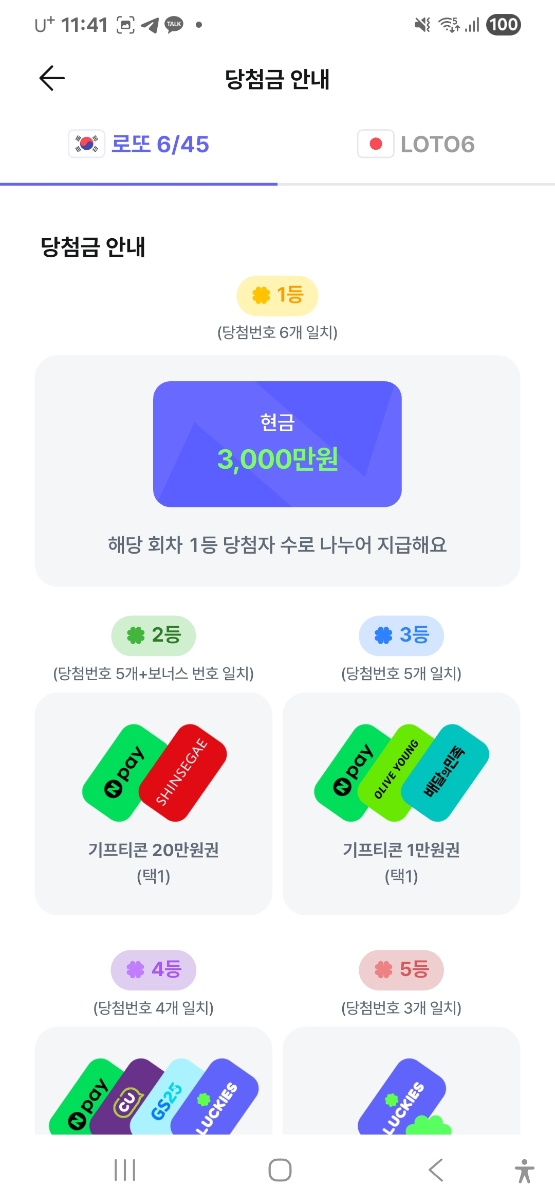 - 당첨 확인: 일요일 정오 이후 앱에서 확인 가능