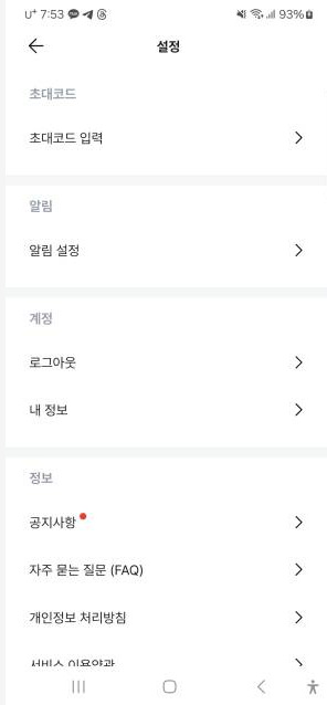 - 우측 상단 ‘설정’ 메뉴 클릭 후 ‘초대코드 입력’ 선택